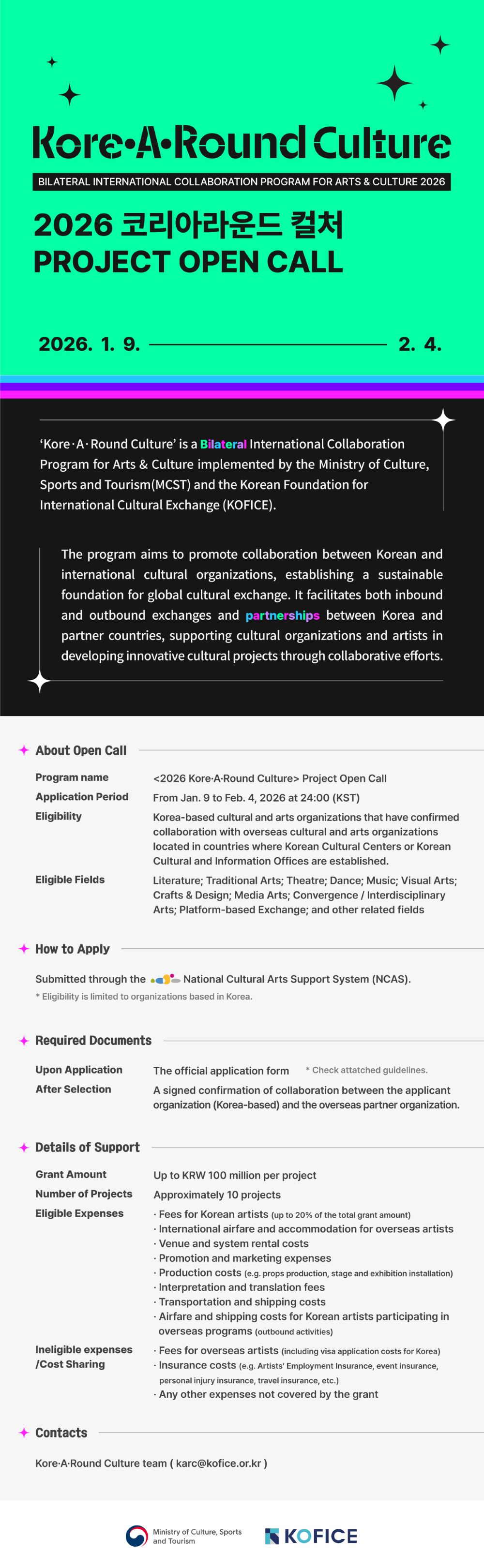 <2026 Kore·A·Round Culture> Project Open call (2026. 1. 9. ~ 2. 4.)