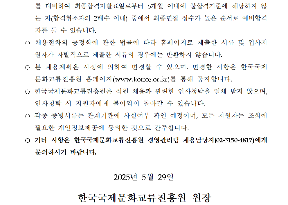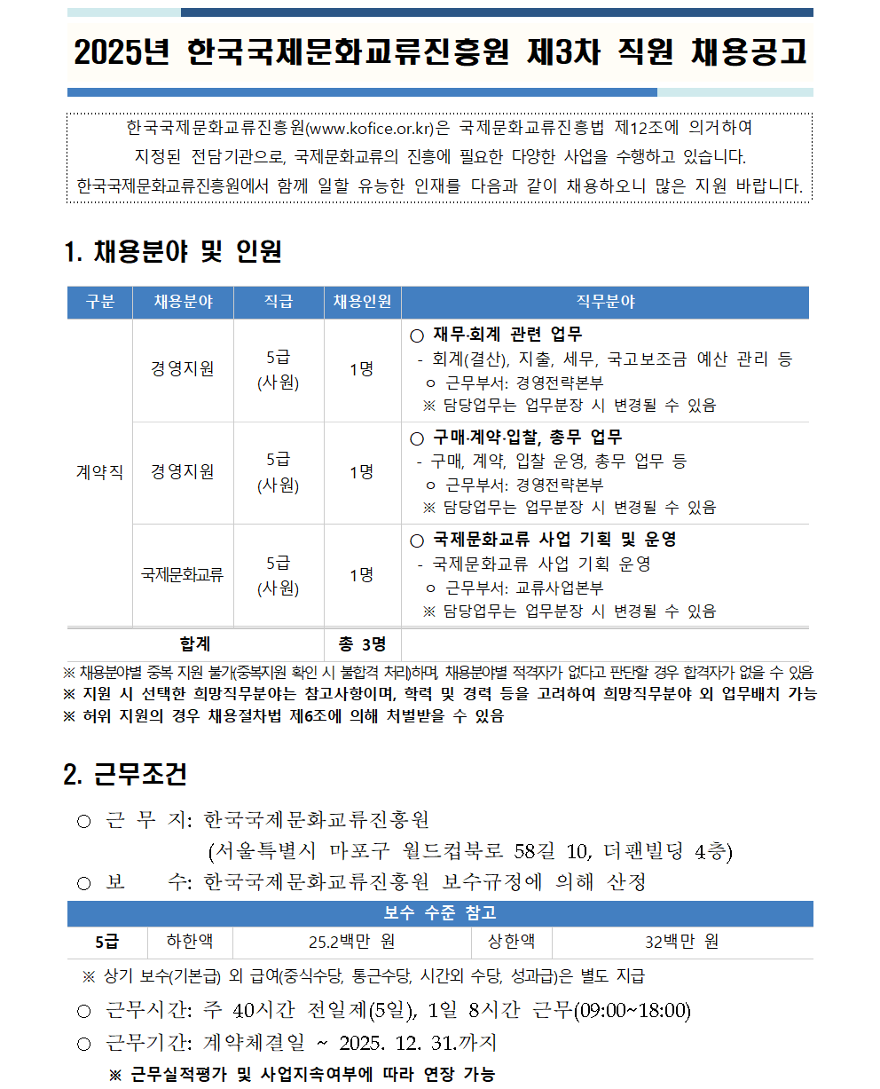 2025년 한국국제문화교류진흥원 제3차 직원 채용공고