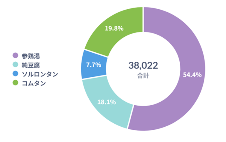 이번 리포트를 통해 겨울을 맞이하여 다양한 한국 국물 요리가 인기 상품으로 진열되어 있는 동향을 알아보았다. 그렇다면, 한국 국물 요리가 사랑받는 이유는 무엇일까? 한식 동향과 함께 설문 조사를 통해 일본 내 한국 국물 요리의 인기 랭킹에 대해서도 알아보자. 일본 내 다양한 요리 레시피를 제공하는 웹사이트인 '프로의 간단 E・레시피(プロの簡単 E・レシピ)'는 지난 10월 19일자에 1일 동안 일본 이용자들을 대상으로 한국요리에 관한 온라인 설문조사를 실시했다. 그 결과 38,022표의 응답을 토대로 일본 사람들이 먹어보고 싶은 한국 국물 요리 상위 4위가 집계됐다.