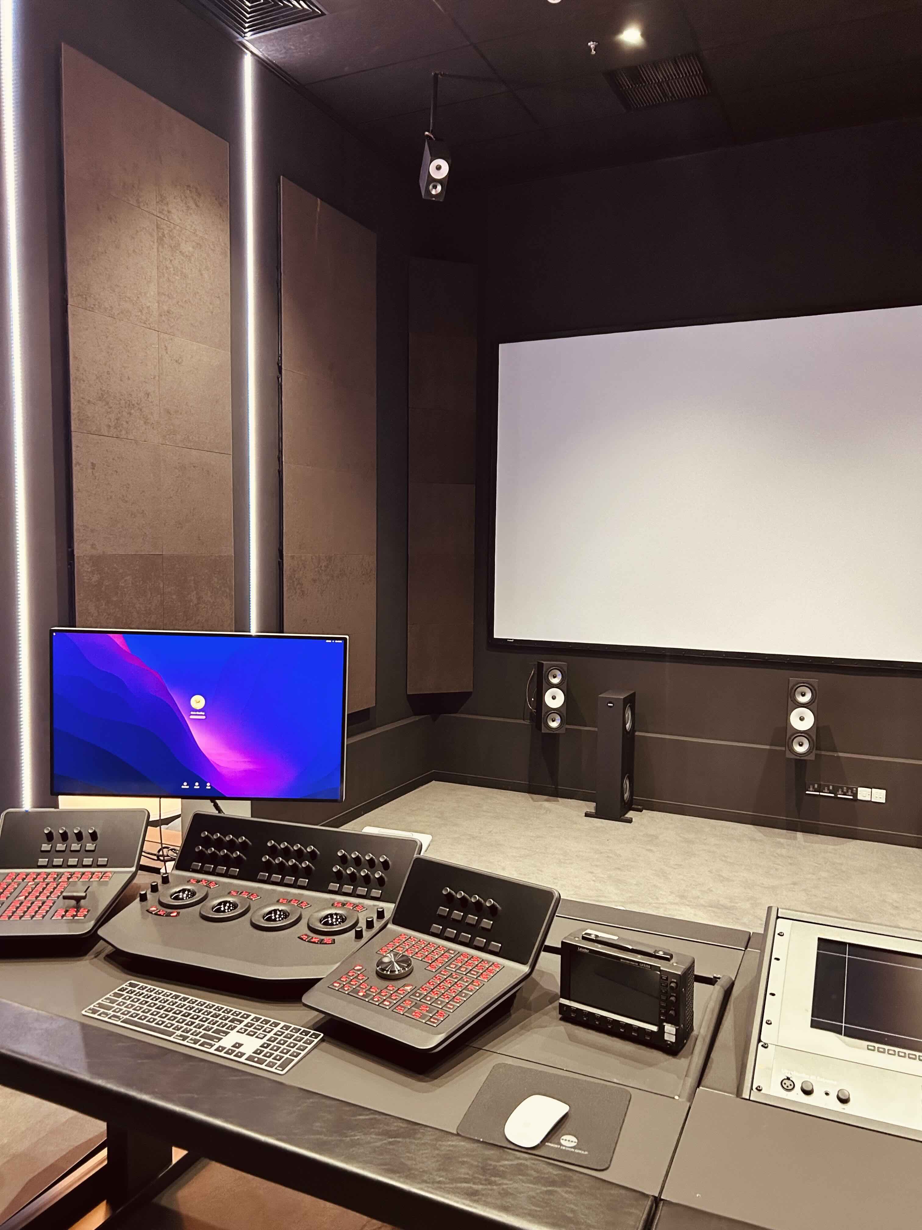 < (좌) 녹음 스튜디오, (우) 콘텐츠 시사실 내부 사진 - 출처: 통신원 촬영 >