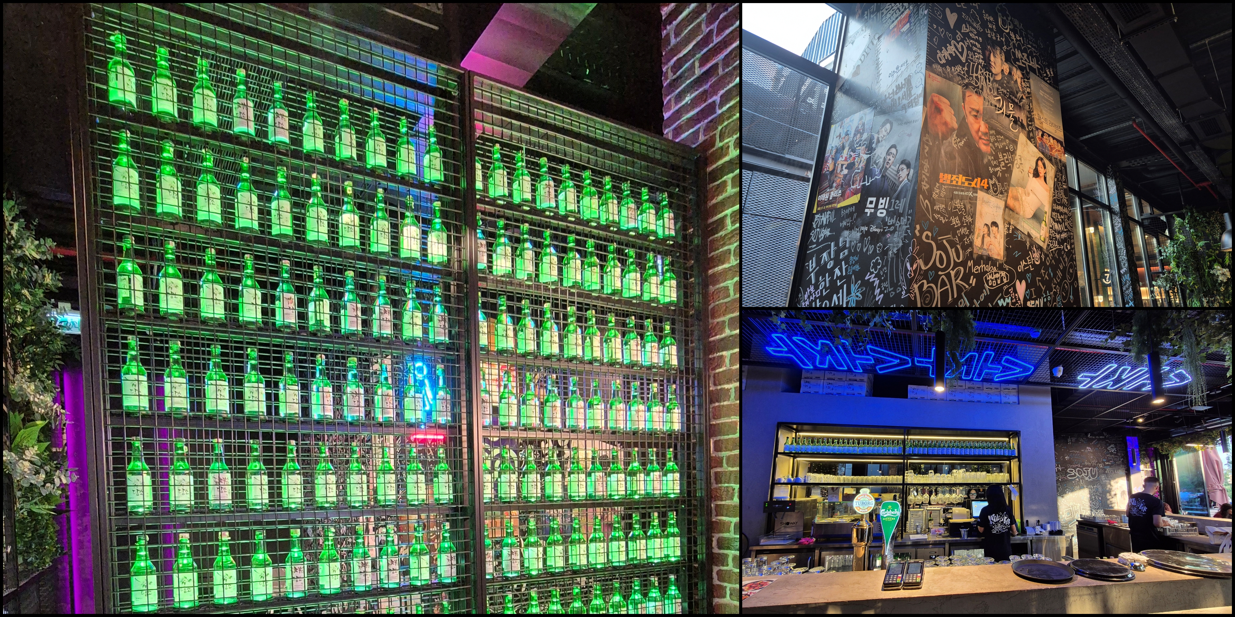 식당 내·외부의 실내 장식은 한글과 영어로 '소주', 'SOJU'라는 글씨로 장식을 했고, <이태원 클라쓰>, <범죄도시>, <무빙>, <괴물>과 같은 한국 드라마와 영화를 대표하는 작품 포스터가 벽면을 메웠다. 그리고 소주의 깨끗한 이미지를 시각적으로 잘 보여주기 위해서 소주를 진열장 천장 위까지 올려 이를 네온 불빛으로 비추게 했다. 식당 음식들은 소주를 중심으로 후라이드와 양념치킨, 떡볶이, 김밥, 비빔밥 등이 있었고, 망고 빙수와 소떡소떡과 같이 한국을 직접 방문했을 때 맛볼 수 있는 음식도 있어 통신원의 관심을 끌었다.