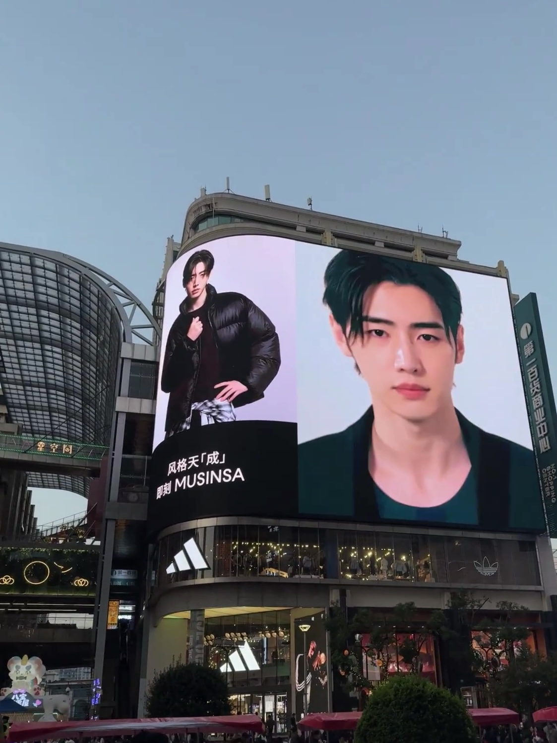 < 상해 최대 관광지 중 하나인 난징동루 거리 전광판에 걸린 무신사 스탠다드 매장 개업 소식 – 출처: 통신원 촬영 >