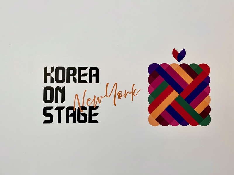 < (좌)국가유산방문 캠페인 ‘코리아 온 스테이지(Korea on Stage)’ 뉴욕 로고와 (우)뉴욕 한국문화원 1층 로비에 전시된 해태상 모습 - 출처: 통신원 촬영 >