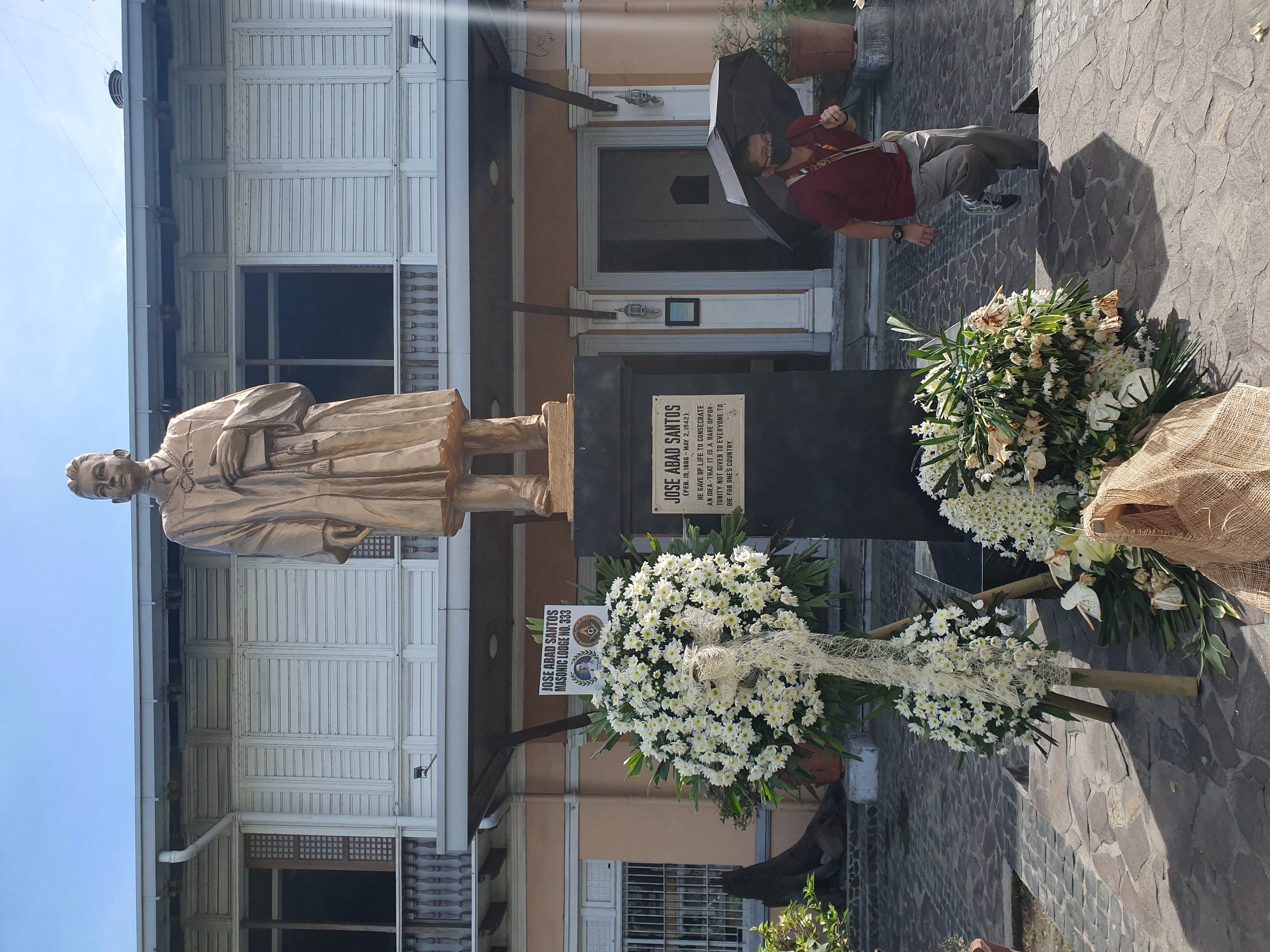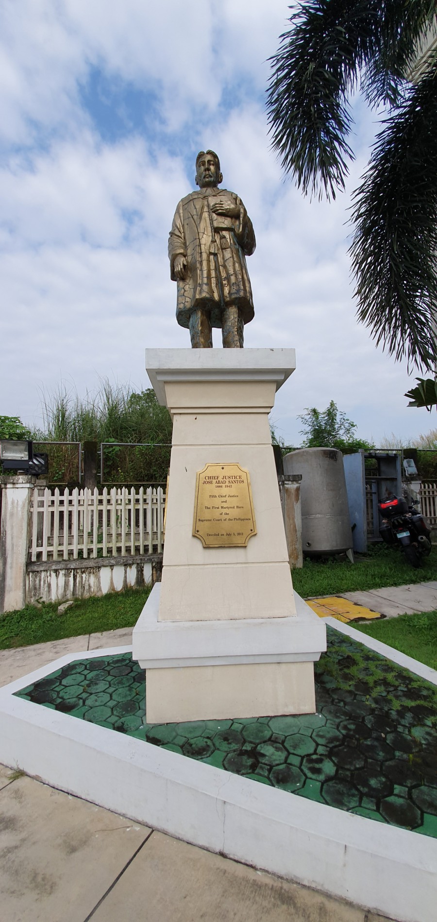 < (좌)앙헬레스 박물관 앞에 있는 호세 아바드 산토스 대법원장 동상, (우)앙헬레스 법원에 있는 호세 아바드 산토스 대법원장 동상 -