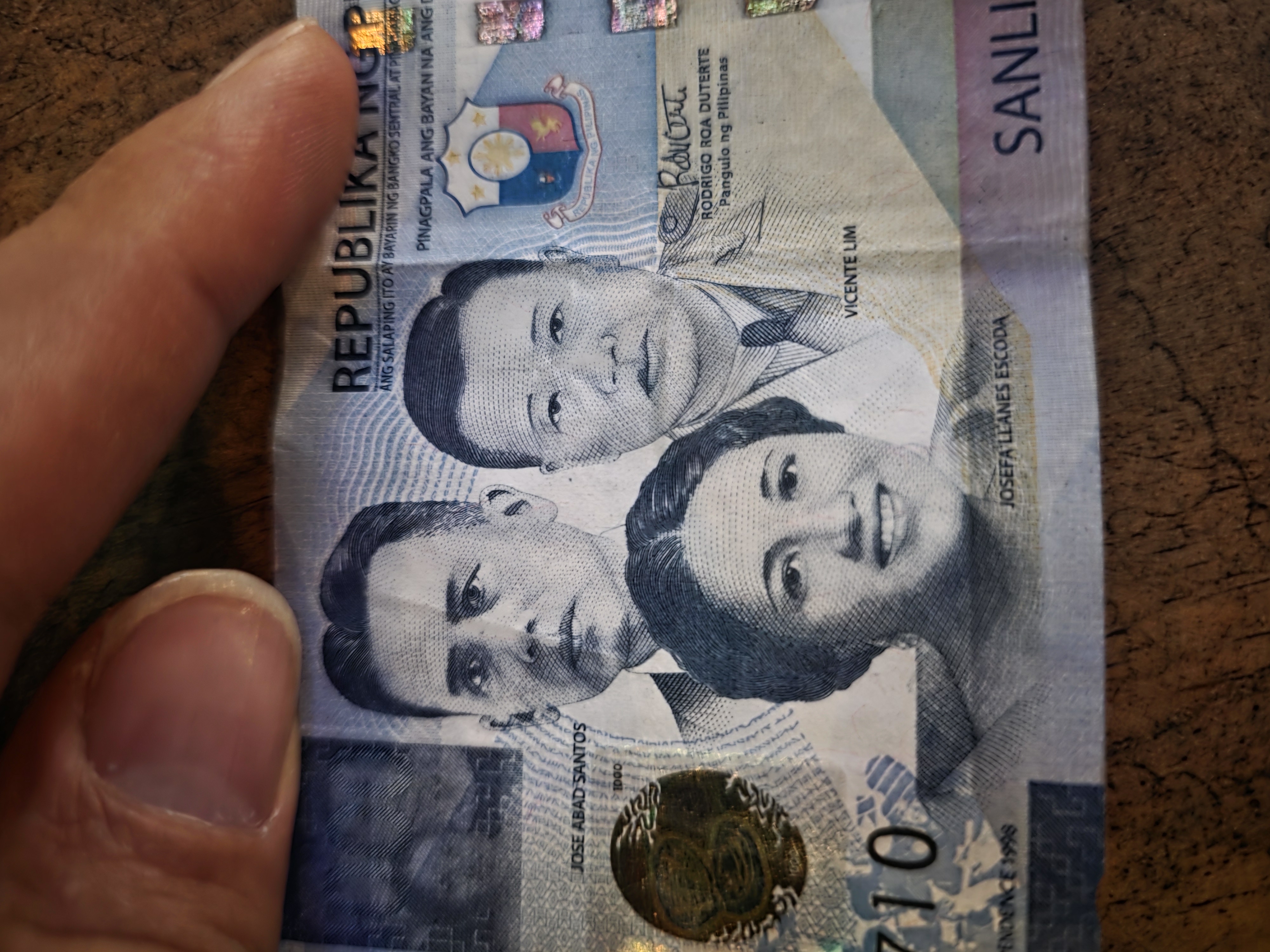 현재 필리핀에서 유통되는 화폐 가운데 가장 고액권인 1,000페소 지폐는 1991년부터 발행되기 시작했다. 특히 2017년까지 유통된 구권 1,000페소 지폐 왼쪽 상단에는 호세 아바드 산토스의 초상이 새겨져 있다. 그의 모습은 단순한 인물 초상을 넘어, 죽음 앞에서도 물러서지 않았던 필리핀의 자존심을 상징하는 존재로 평가된다. 이 지폐에는 산토스 대법원장 외에도 두 명의 인물이 함께 담겨 있다. 1910년 필리핀인 최초로 미 육군사관학교 웨스트포인트를 졸업한 빈센트 림 장군이 그중 한 명이다. 중국계 필리핀인인 그는 필리핀 보이스카우트 창립에 기여한 7인 가운데 한 명으로도 알려져 있다. 지폐 하단에 함께 등장하는 호세파 랴네스 에스코다는 필리핀 걸스카우트 창립자이자 여성 참정권 확립을 위해 힘쓴 인물이다. 사회운동가로 활동하며 여성의 권리 신장에 앞장섰던 그는 일제 점령기 동안 협조를 거부하다 희생된 것으로 전해진다. 이들 세 인물은 모두 일본 점령기에 협력을 거부했다가 살해됐으며, 시신조차 수습되지 못한 비극적 운명을 공유하고 있다. 한편, 에스코다의 남편인 안토니오 에스코다 역시 투옥됐다가 빈센트 림 장군과 함께 처형된 것으로 추정된다. 1,000페소 지폐는 이처럼 일제에 맞서 저항한 인물들의 희생과 정신을 기리는 상징적 매체로 자리매김하고 있다