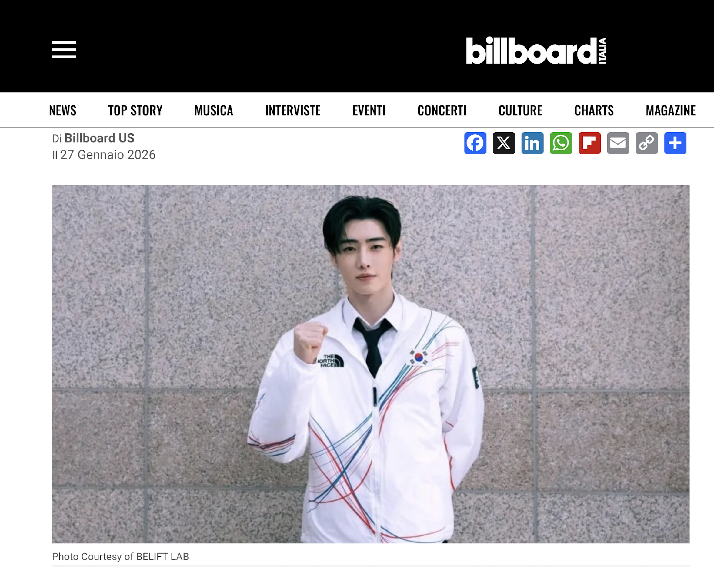 - 《(Billboard Italia(2026. 01.27)》, ‘Sunghoon degli ENHYPEN sarà il tedoforo per la Corea alle Olimpiadi di Milano-Cortina’,