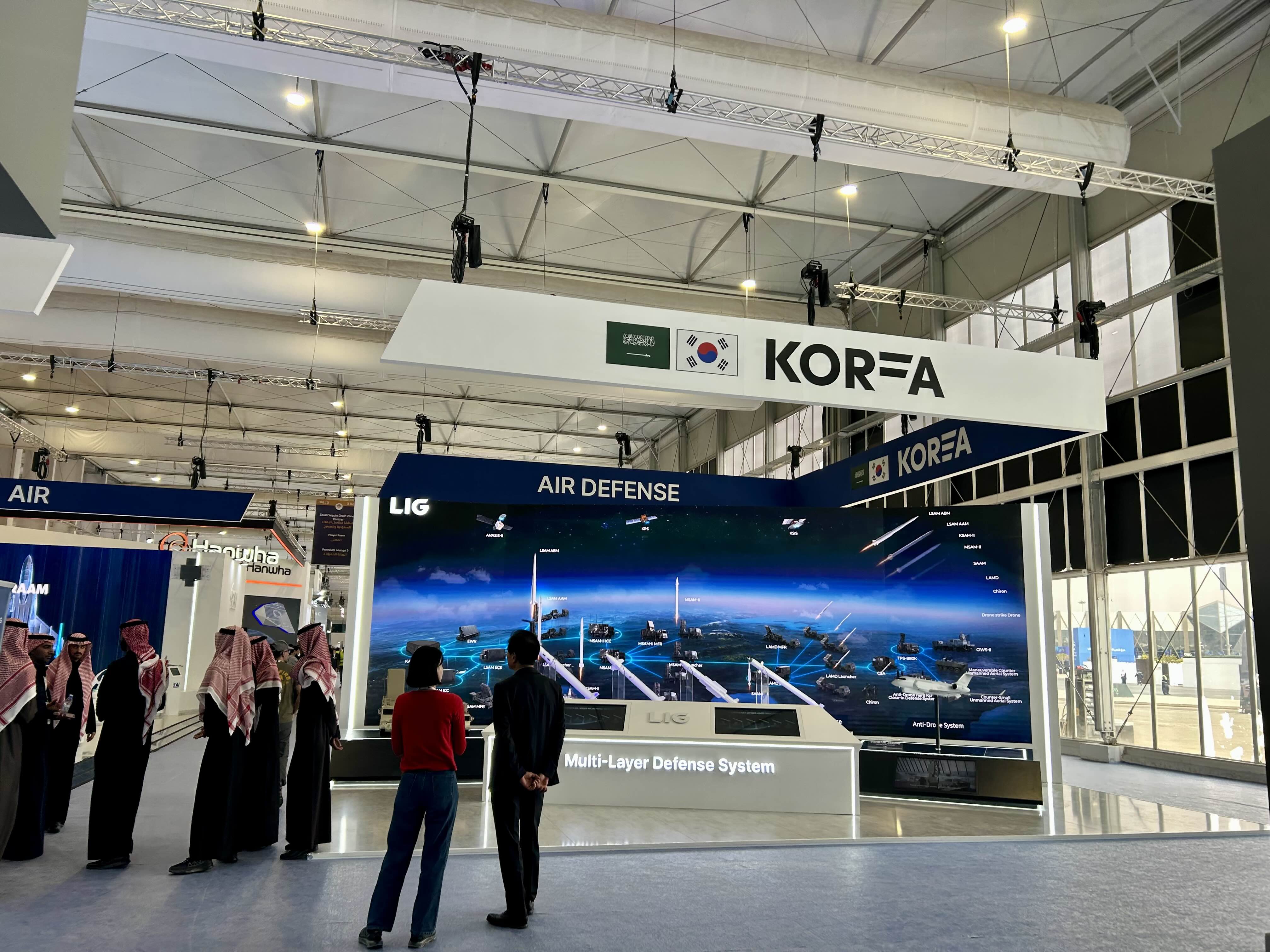 전시장에서는 지상, 공중, 해상, 우주 분야를 아우르는 다양한 방산 시스템과 실시간 시연 프로그램, 국제 컨퍼런스 세션이 마련됐다. 특히 대규모 야외 전시 공간은 항공 시연과 실물 장비 전시를 병행할 수 있도록 설계되어 관람객들의 관심을 끌었다. 이 가운데 사우디관에 대한 관심이 가장 높았다. 관람객과 군 관계자, 주요 인사들이 지속적으로 부스를 방문했으며, 사우디아라비아 군수산업회사(Saudi Arabian Military Industries, SAMI) 부스에서는 자국 방산 기술과 현지화 전략이 집중적으로 소개됐다. 대형 장비 전시와 디지털 기반 연출은 사우디 방산 산업의 확장 방향을 보여주는 핵심 요소로 평가됐다.
