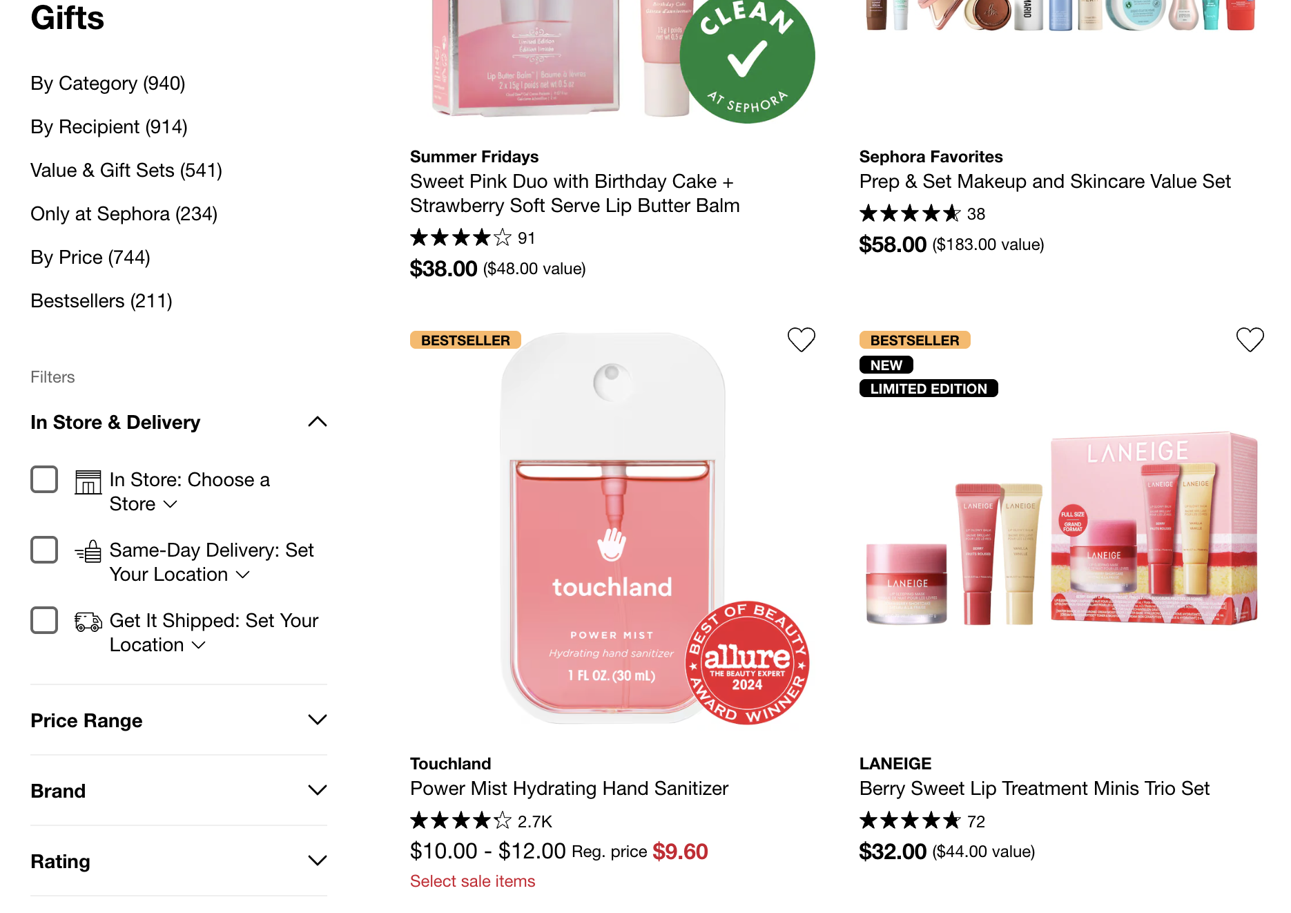 - 싱가포르 세포라 홈페이지, https://www.sephora.com/shop/gifts