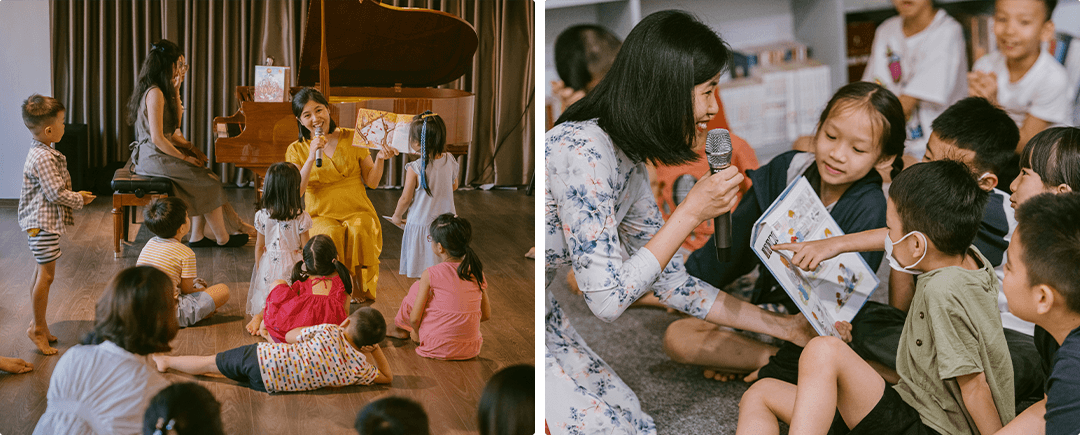 In my role as a children's book educator, I am always filled with energy when working with children. Besides working in kindergartens and elementary schools to consult and implement training programs on reading with children for teachers, I always love encounting and reading with my little reading buddy. I and my colleagues at ICBC Vietnam believe that ICBC believes that picture books, children's books and art are the wings of children's curiosity and imagination, no matter their age, so we strive to organize reading programs with creative concept to share the joy of reading with children. “I see…” and "It starts with a page..." is a series of creative and interactive reading workshops for children organized by ICBC Vietnam to help primary school-age children explore the world of curiosity and imagination at public art exhibition spaces through reading activities and different forms of creative practice. The children's books selected for the program will open a journey of discovery, feeling the works and stories with their own curiosity, imagination, and language, through which, each art exhibition, each children's book will bring beautiful and warm emotional connection for children.