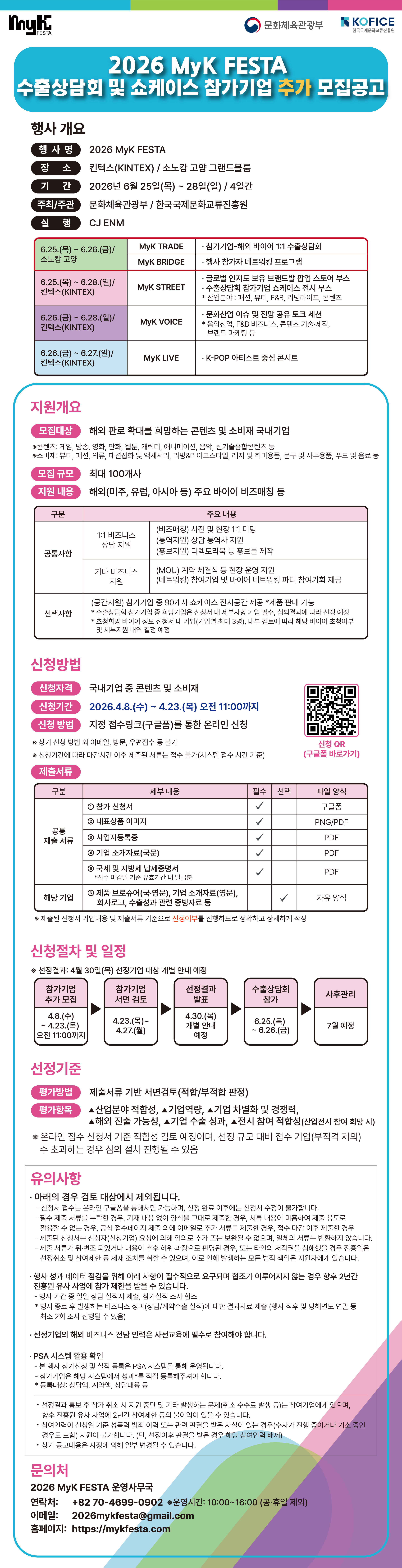 한국을 대표하는 콘텐츠를 경험할 수 있는 공간에서 산업 최전선의 전문가들이 모여 지속가능한 한류 확산의 새로운 모델을 제시합니다. K-POP콘서트, 글로벌 컨퍼런스, B2B·B2C박랍회 등 다태로운 프로그램들을 통해 문화산업 전반을 아우르는 종합적 글로벌 축제를 지향합니다. 나아가 문화 영향력의 확대와 연관 산업 문야의 직·간접적인 경제적 부가가치를 창출하고자 합니다.