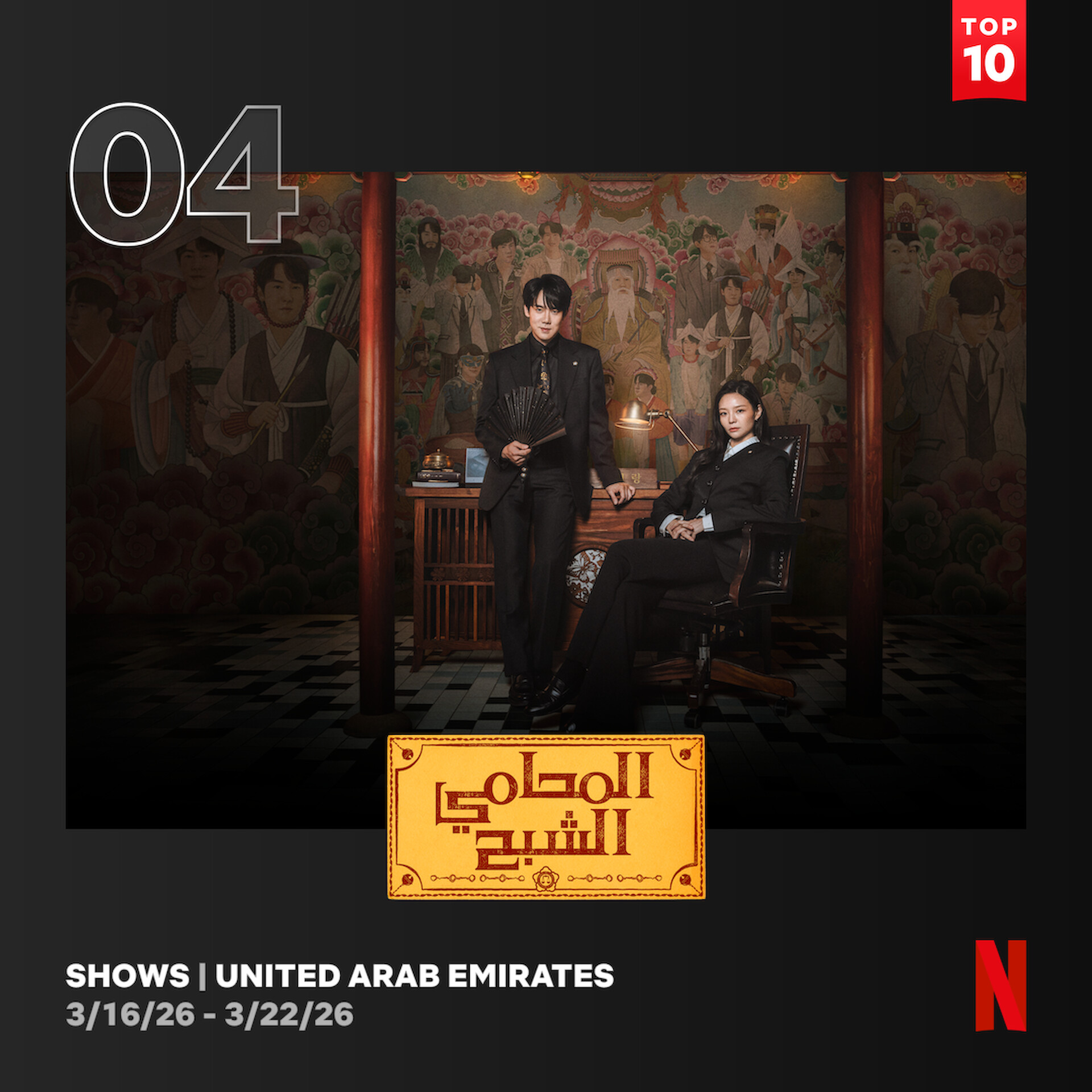 3월 아랍에미리트 넷플릭스 TV 프로그램 부문에서 한국 콘텐츠가 두 편이나 10위권에 진입하며 강한 존재감을 보였다. BTS의 광화문 컴백 공연 이 2위, 한국 드라마 <신이랑 법률사무소(Phantom Lawyer)>가 4위를 차지했다. 특히 한국 콘텐츠가 드라마와 음악 공연이라는 서로 다른 장르로 동시에 상위권에 오른 점이 눈에 띈다.